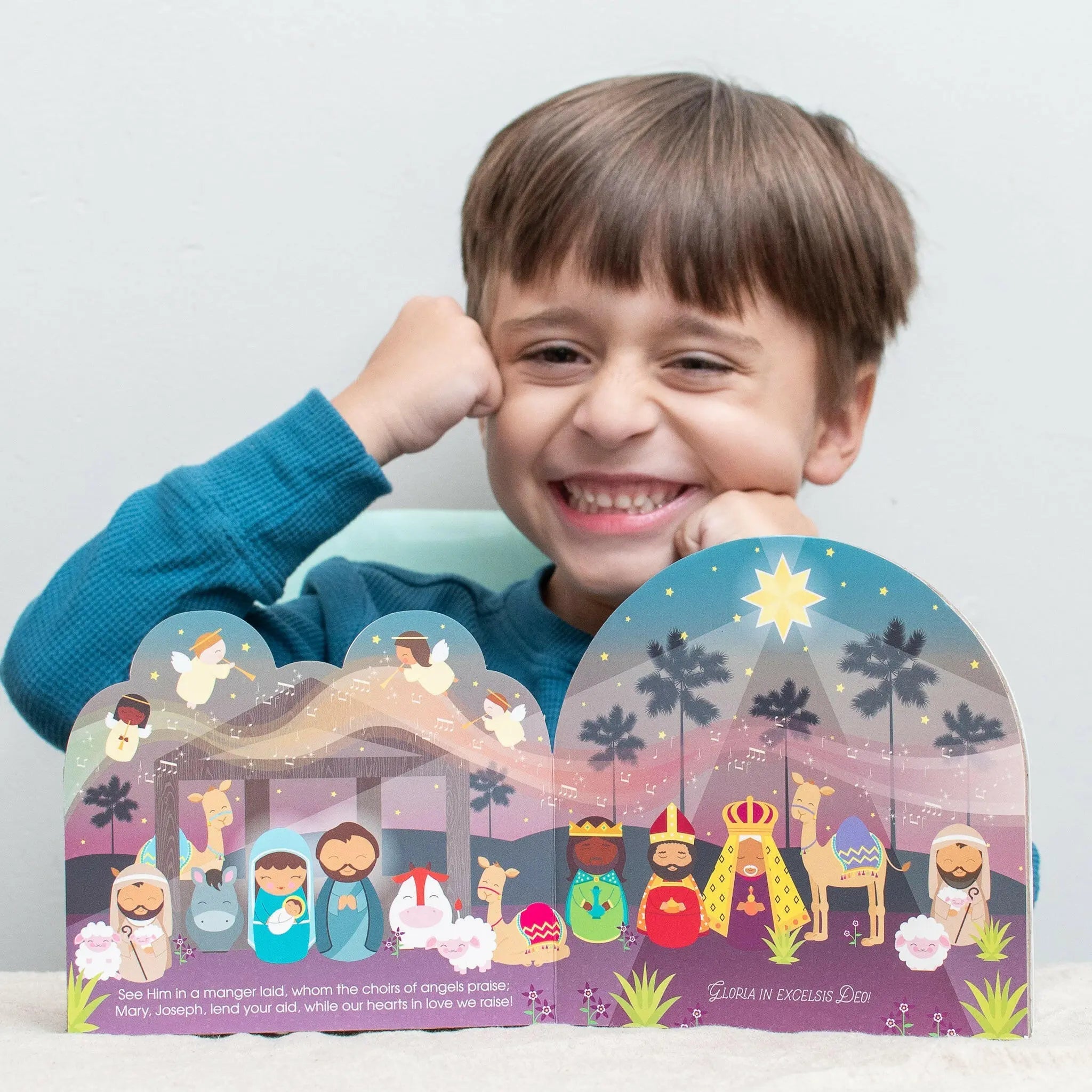Journey through the classic Christmas song, "Angels We Have Heard On High" towards the Nativity of our Lord! The song, which has its origins in 18th century France, and was paraphrased and retitled by Father James Chadwick (a Roman Catholic bishop)in 1862, has been brought to life in a new and enchanting way by award-winning illustrator Chantal Baros. This lovely book will fill your home and your Christmas season with joy!